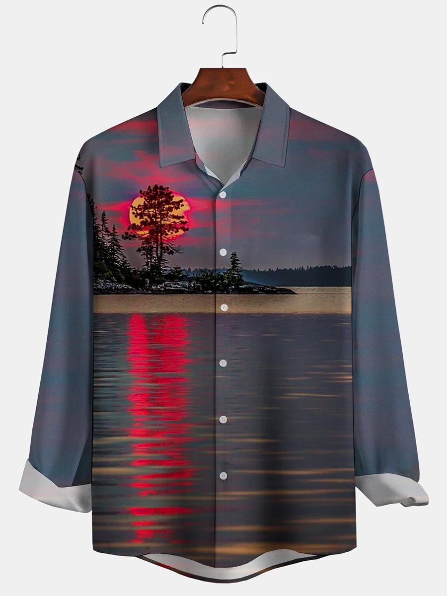 Heren Overhemd met Lange Mouwen en Zonsopgang Print