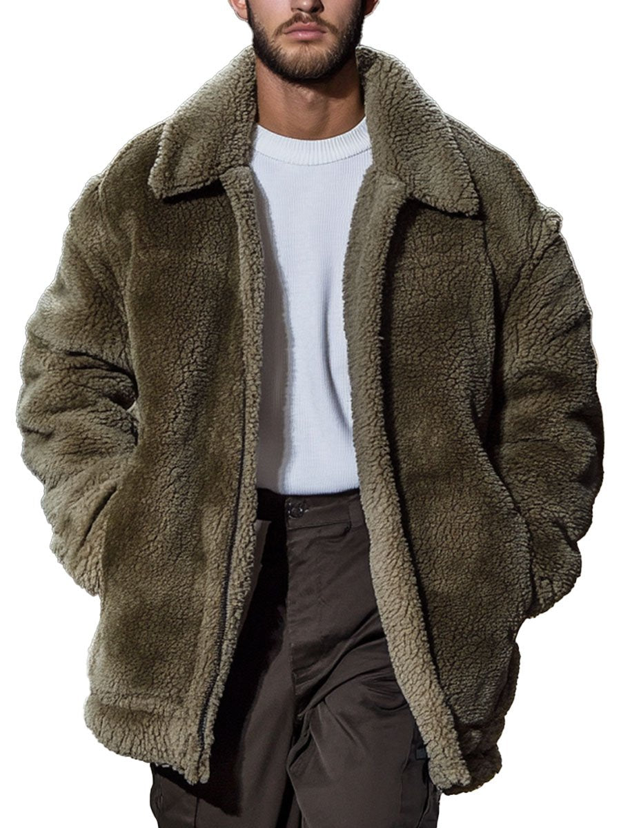 Heren Teddy Fur Jas met Rits en Dubbele Zakken - Warm & Stijlvol