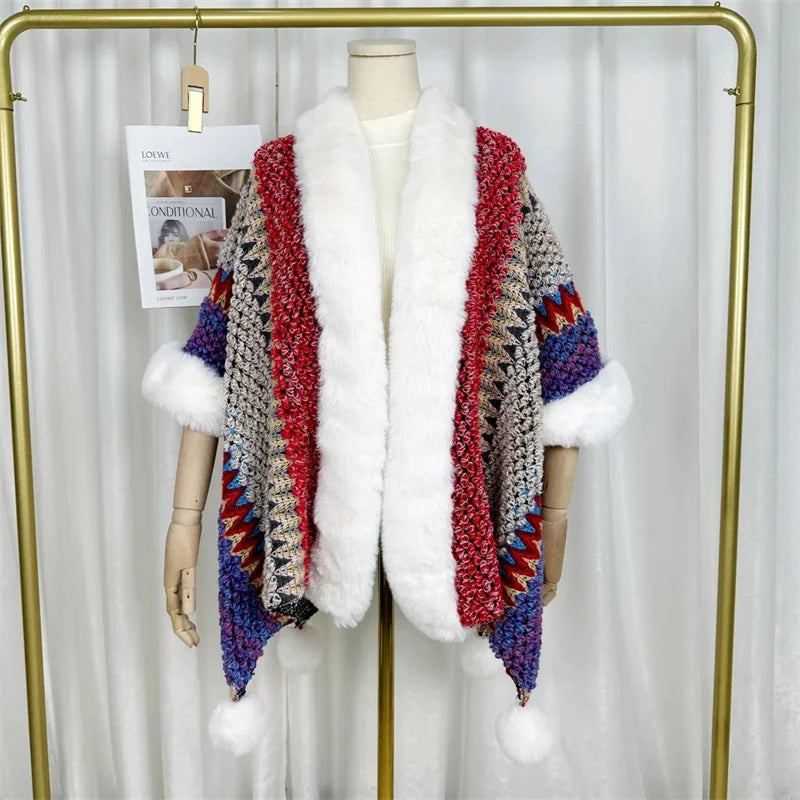 Ethno sjaal met bontrand voor dames – opvallende en warme stijl | Evelynza