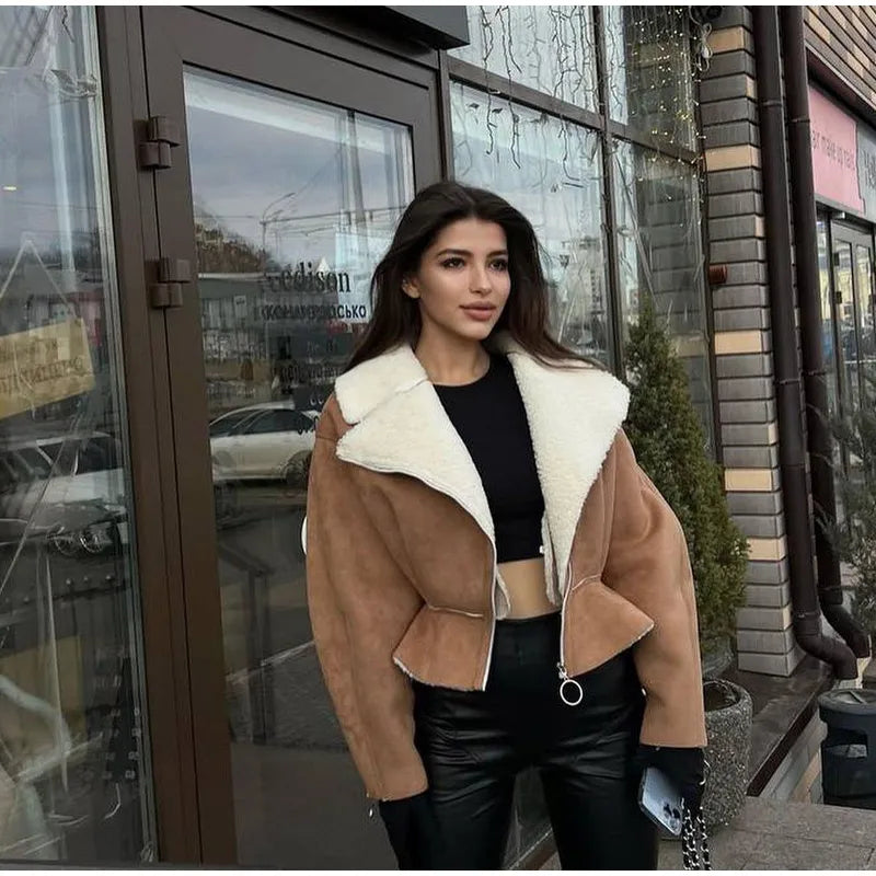 Wustina Jack - Chique Kort Wol Bomberjack met Ritssluiting voor Dames