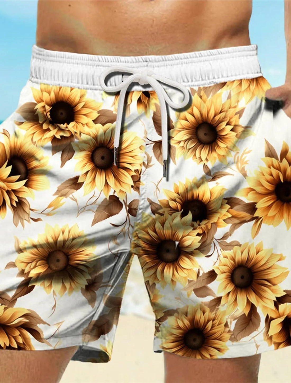Nubil Witte Lichtgewicht Zwembroek Met Zonnebloemprint