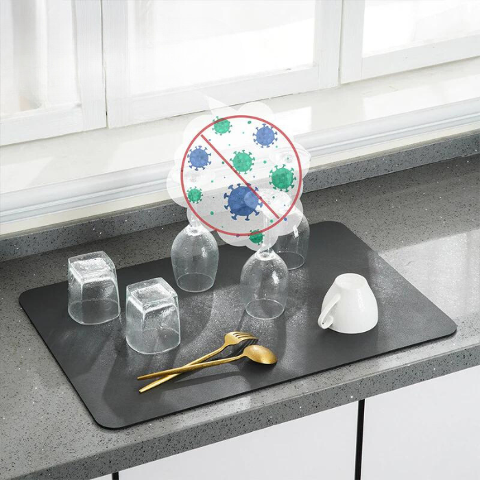 De UltraDry Absorberende Afdruipmat biedt niet alleen een stijlvolle toevoeging aan jouw keuken, maar met zijn absorberende kracht houdt het ook jouw werkruimte schoon en netjes.