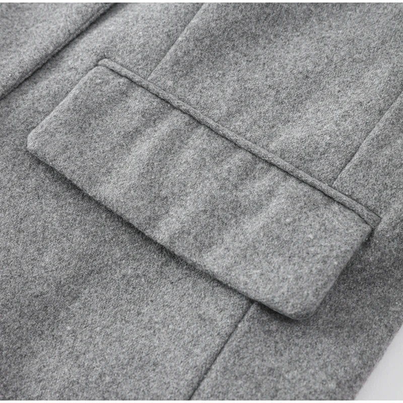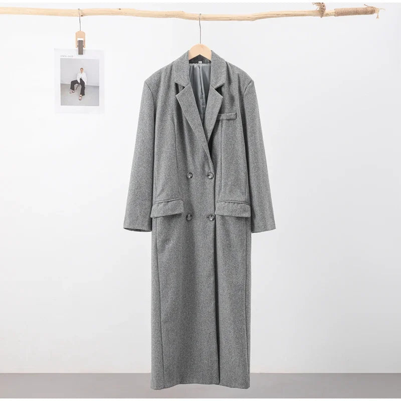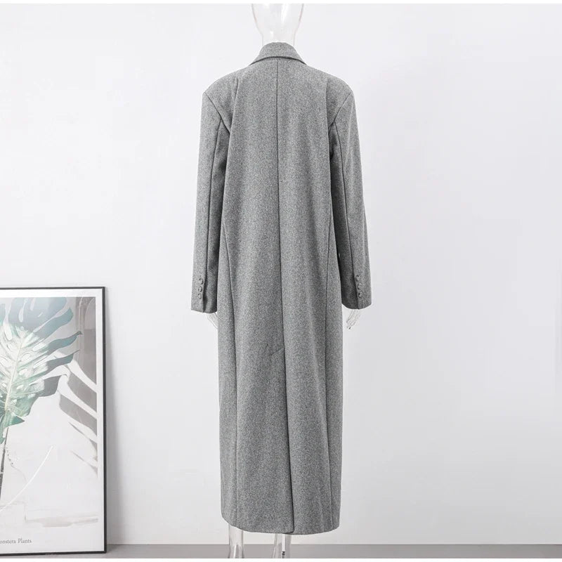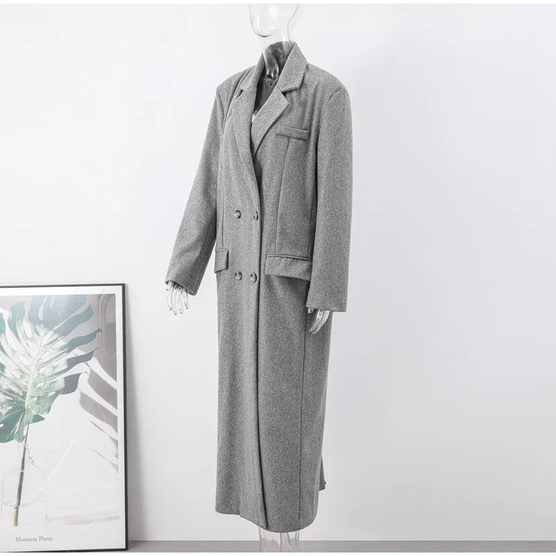 - Stijl: Lange jas met dubbele rij knopen voor extra flair.