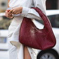 Blijf trendy met onze stijlvolle en handgemaakte Crimson Loomlux! Het zachte en hoogwaardige PU-leer voelt luxueus aan, terwijl het geweven ontwerp een unieke touch aan je outfit geeft.
