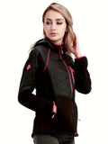Dames Lange Mouwen Patchwork Thermische Jas met Capuchon