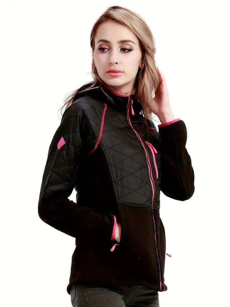 Deze dames thermische jas met lange mouwen en patchwork design is de perfecte keuze voor koude dagen