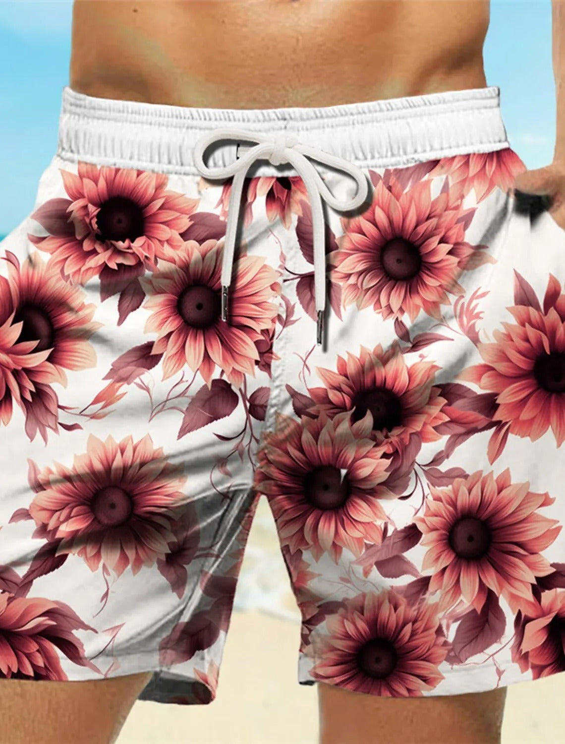 Nubil Witte Lichtgewicht Zwembroek Met Zonnebloemprint