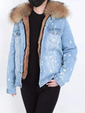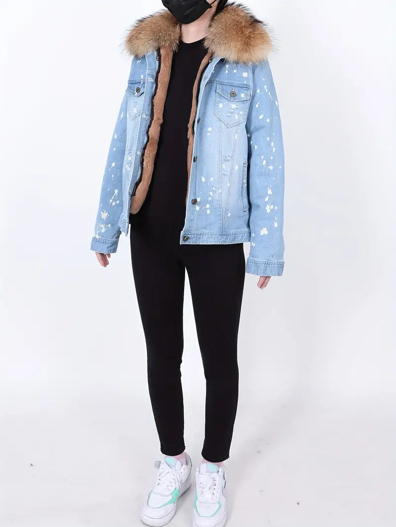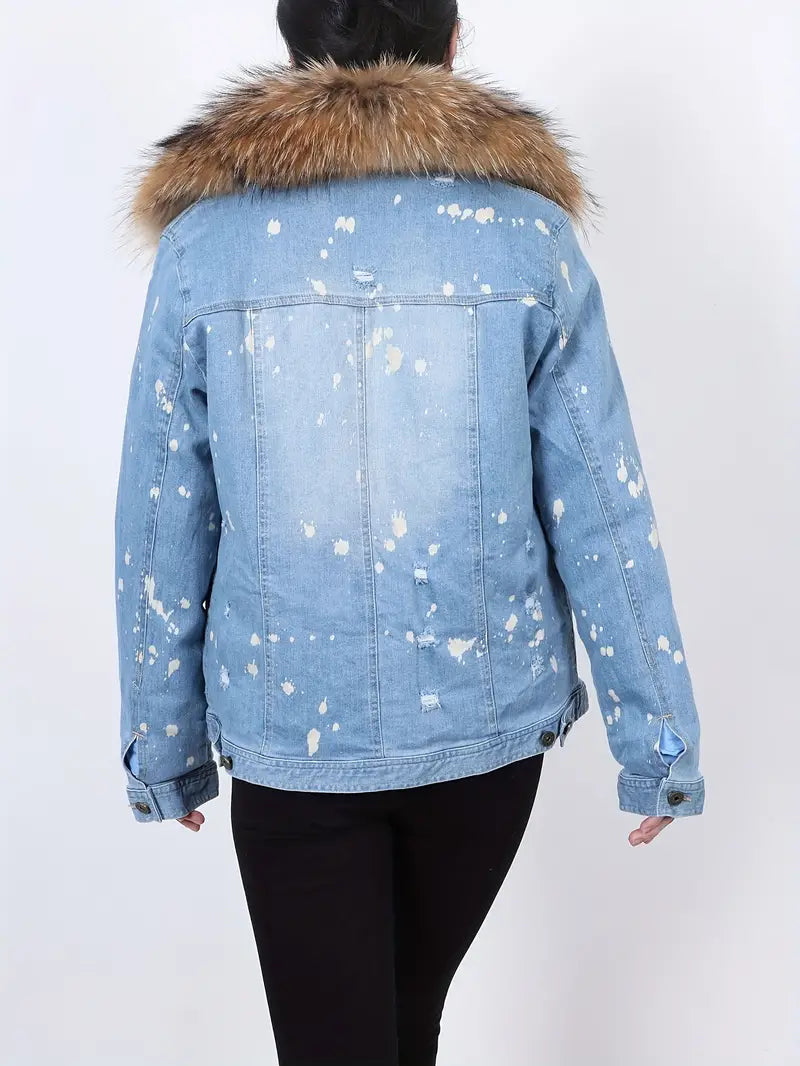Elegant Denim Jack met Imitatiebont en Pluche Voering voor Dames | Joela