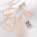 Esmee's Luxe Satijnen Pyjama Set: Vijfdelige Nachtkleding met Kantdetails