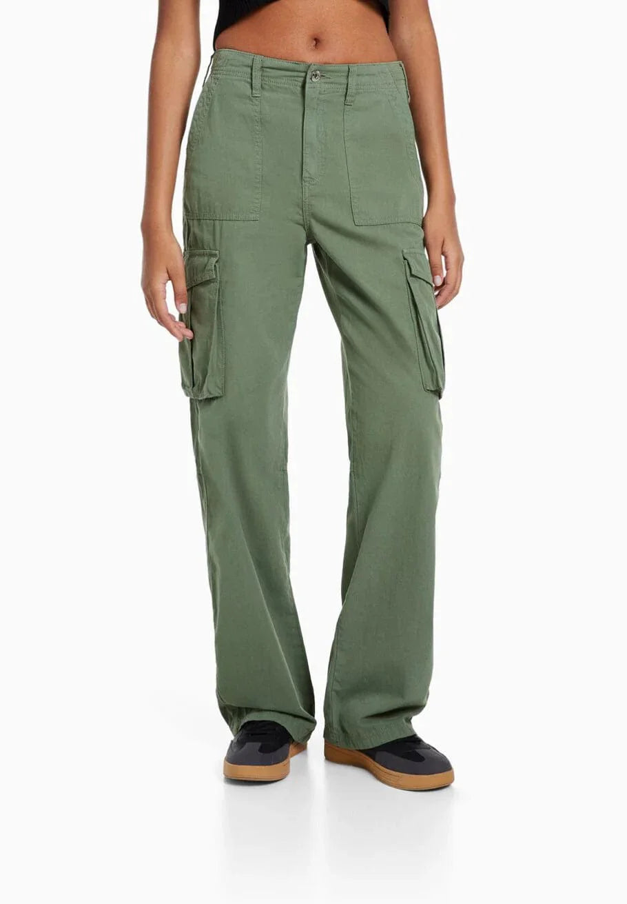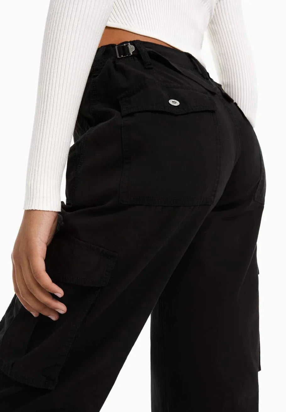 Verhoog je garderobe met FestyCargo Cargo Broek - waar functionaliteit en strakke stijl elkaar ontmoeten. Deze broek is ontworpen met de kosmopolitische vrouw in gedachten en heeft ruime zakken en een hoog getailleerd model, wat zorgt voor zowel gemak als een flatterend silhouet.