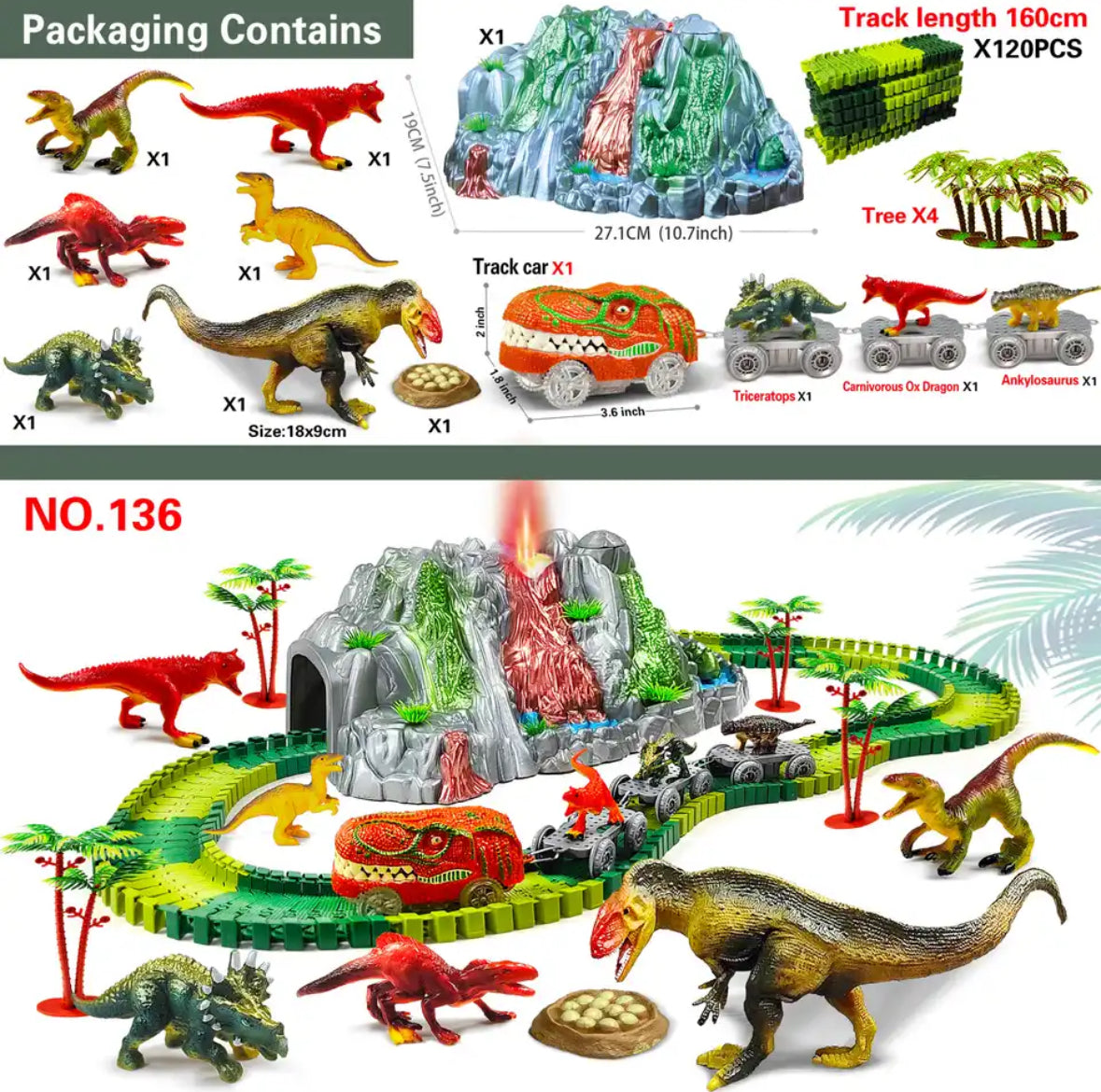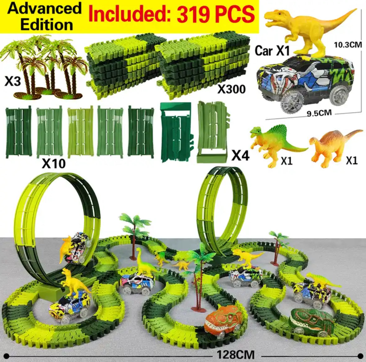 Flexible XXL Dinosaurier-Auto Rennstrecke | Elektrisch & Met Looping