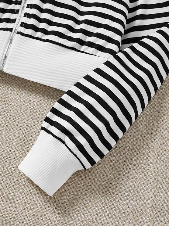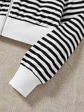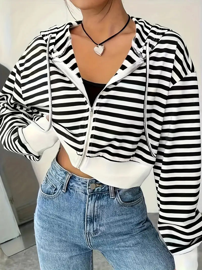 Gestreept Jack Capuchon Trekkoord Dames Lange Mouwen Ritssluiting | Tonyana