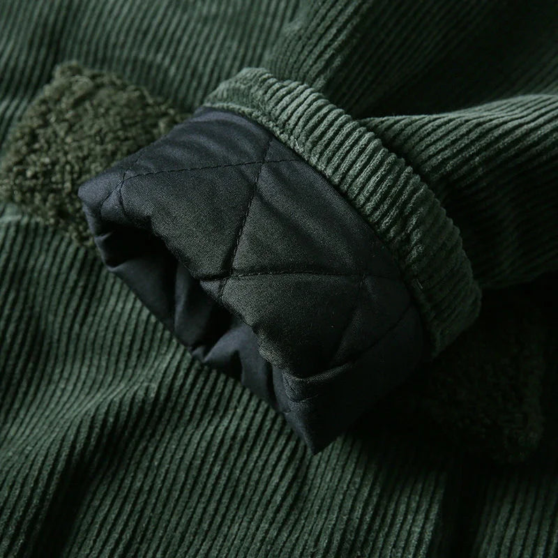 - Materiaal: Gewatteerd corduroy voor een comfortabele, warme pasvorm.