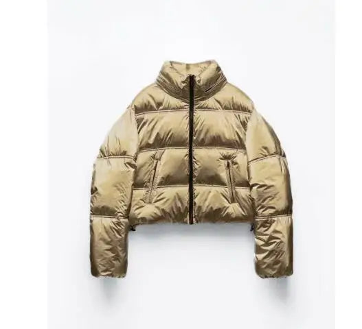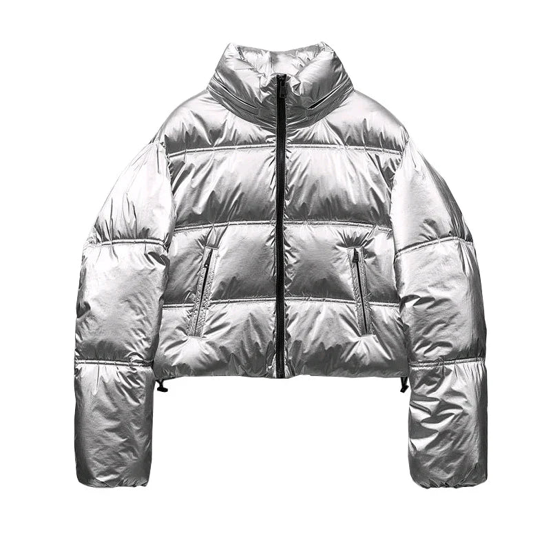 Gewatteerd metallic winterjack met hoge kraag voor dames | Nashari