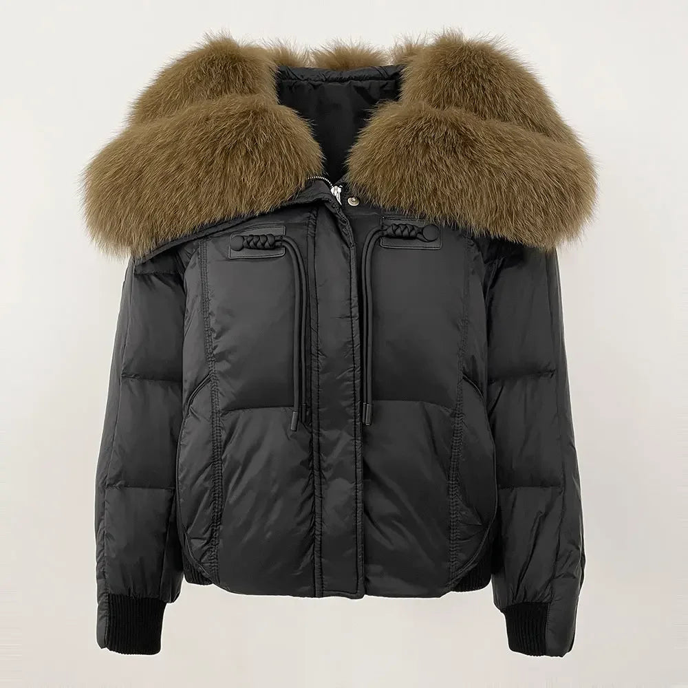 - Luxe bontkraag: Een elegante en zachte kraag die je warm houdt.