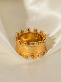 Met een uniek houtnerfpatroon straalt deze ring tijdloze luxe uit en is hij ideaal voor elke gelegenheid, van feestjes tot dagelijks gebruik. Gemaakt van hoogwaardig roestvrij staal met een goud vergulde afwerking, biedt hij een duurzame glans die niet vervaagt.