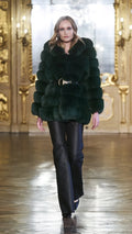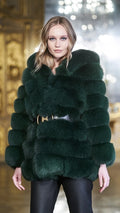 Groene Luxe Bubbel Bont Capuchonmantel - Stijlvolle elegantie voor dames