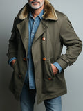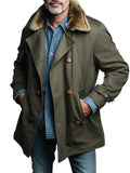 Blijf warm en stijlvol tijdens de koudere seizoenen met de Heren Casual Pluche Revers Dubbelgeknoopte Mid-Length Cargo Jas