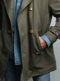 Heren Casual Pluche Revers Dubbelgeknoopte Mid-Length Cargo Jas - Stijlvol & Warm