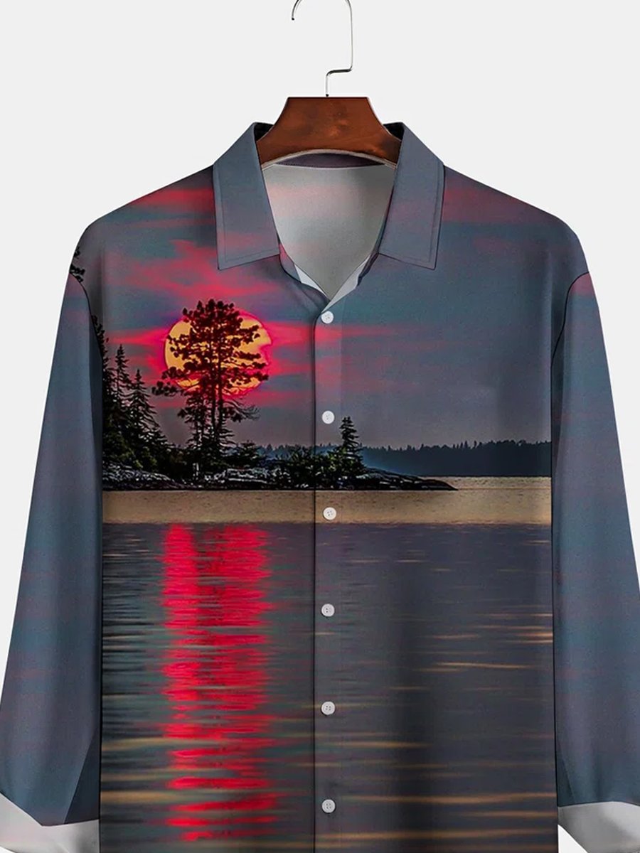 Ontdek het Heren Overhemd met Lange Mouwen en Zonsopgang Landschap Print, een perfecte mix van stijl en comfort, ideaal voor dagelijks gebruik, vakanties en casual uitjes