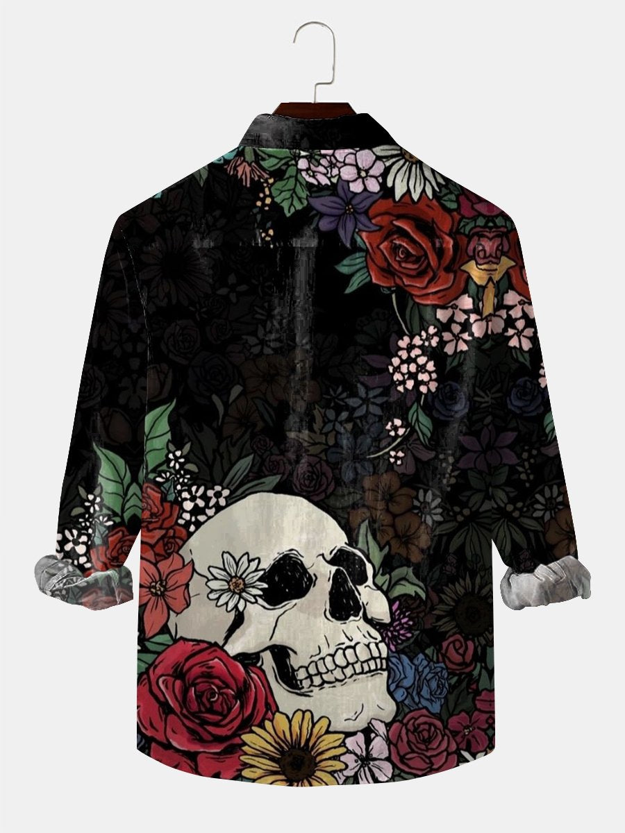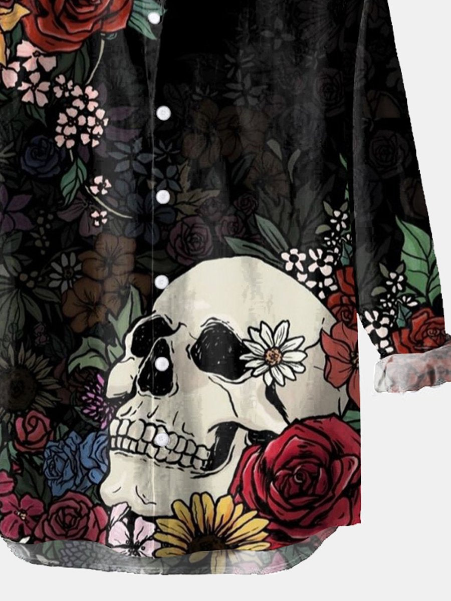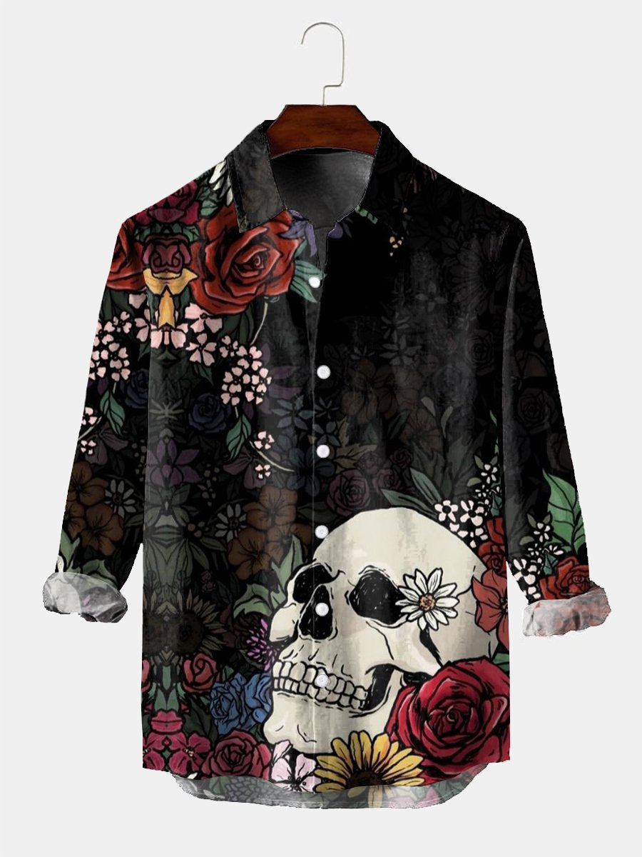 Voeg een gedurfde touch toe aan je outfit met ons Heren Resort Skull Floral Lange Mouwen Shirt