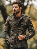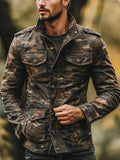 Heren Vintage Camouflage Print Multi-Pocket Rits Casual Jas