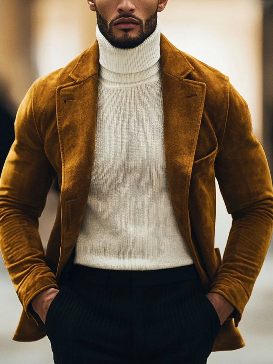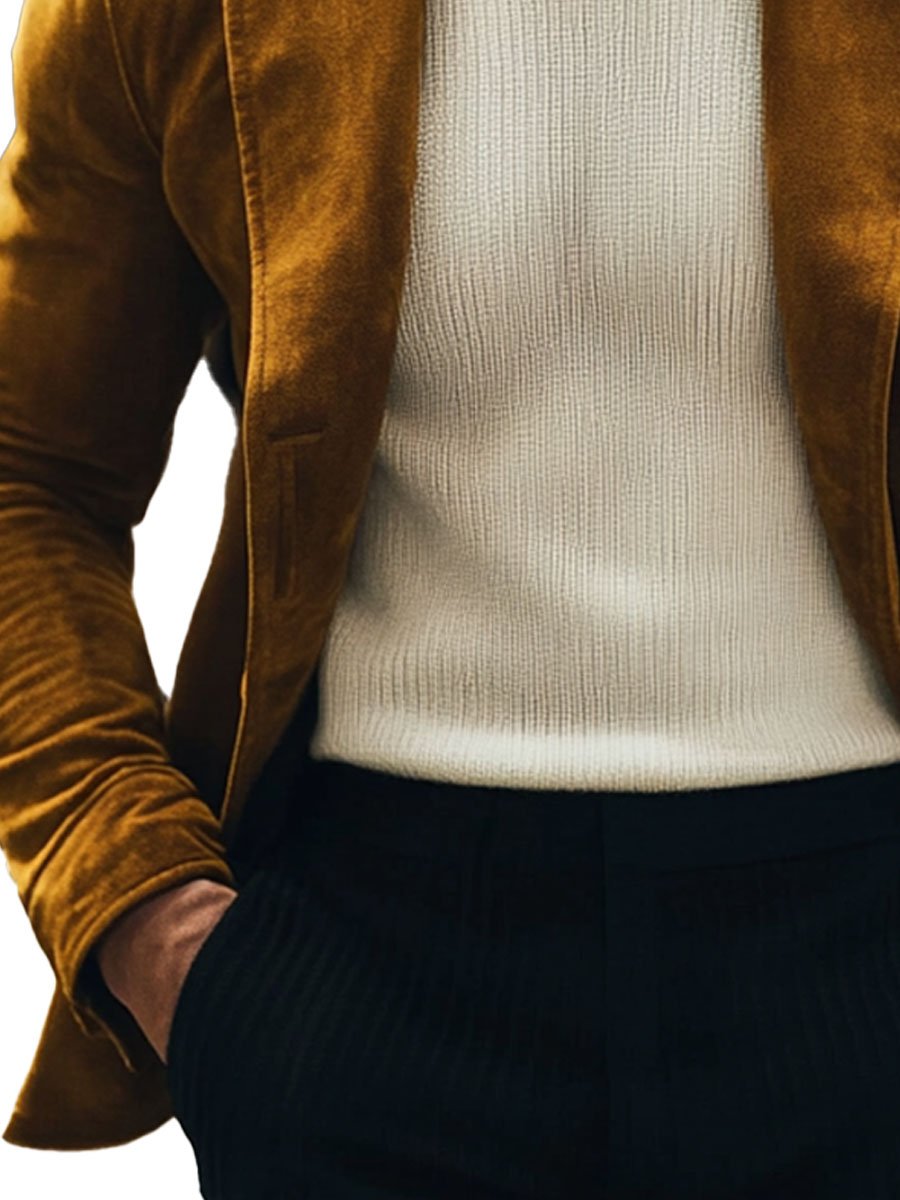 Verhoog je stijl met de herenblazer Lapel Single Breasted Vintage Suede