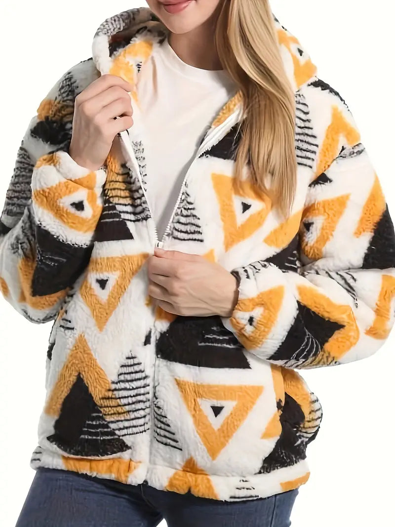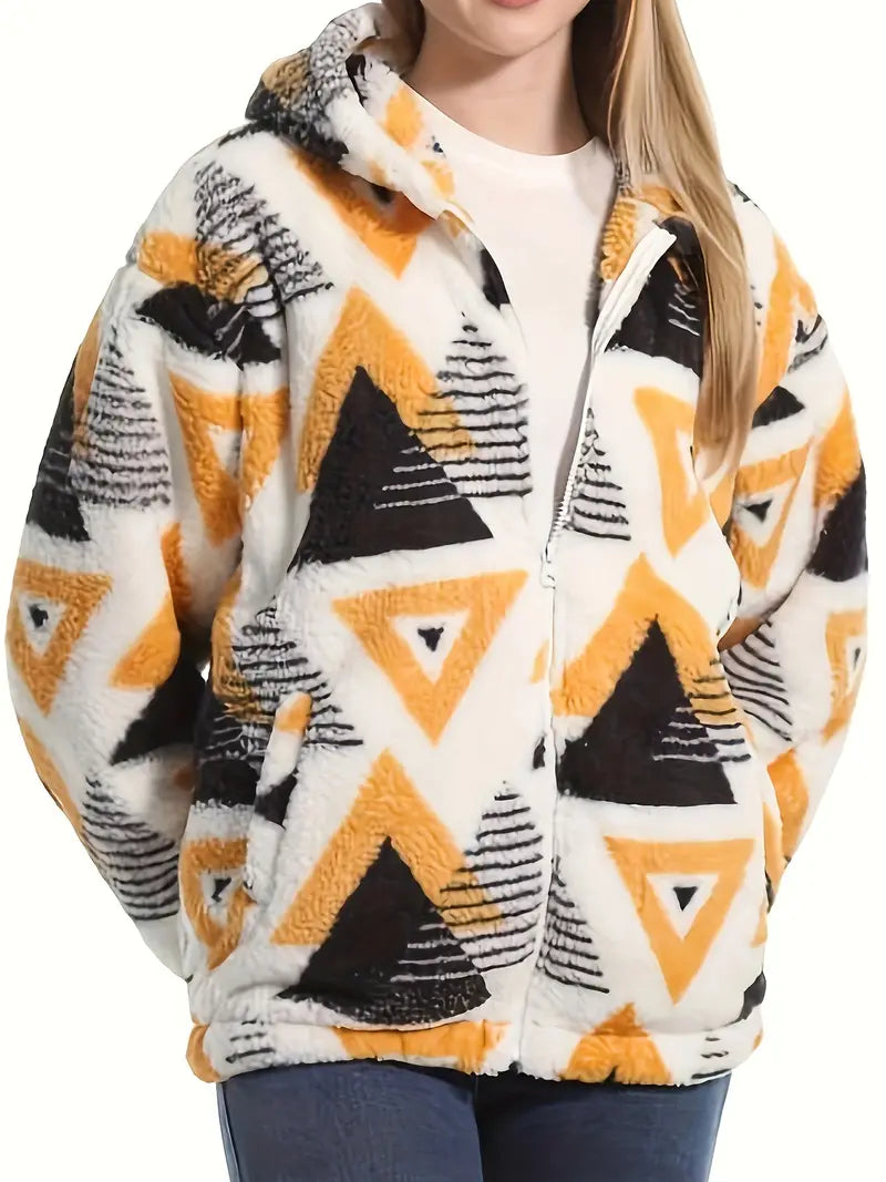 Deze stijlvolle mantel van imitatiebont voor dames combineert warmte en mode, met een speelse cartoonprint die je outfit een unieke uitstraling geeft
