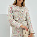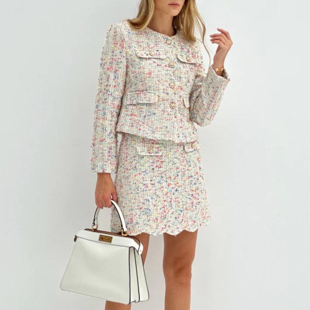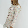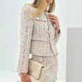 Jakobsmuschel Rand Tweed Jacke | Wit en Multi-kleur | Katiena