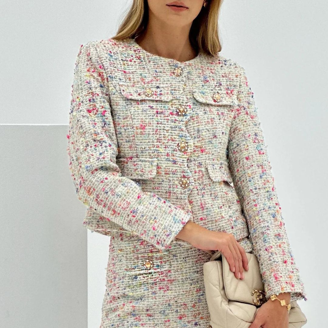 - Tijdloos design: Klassieke tweed gecombineerd met moderne kleuren.