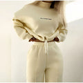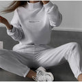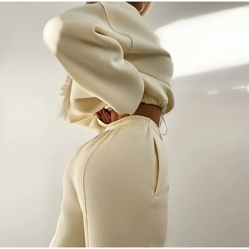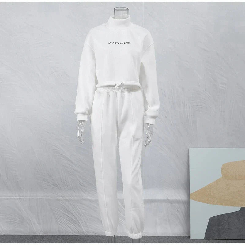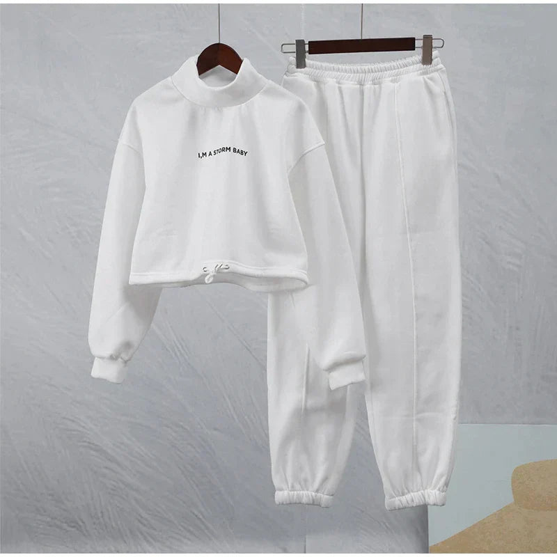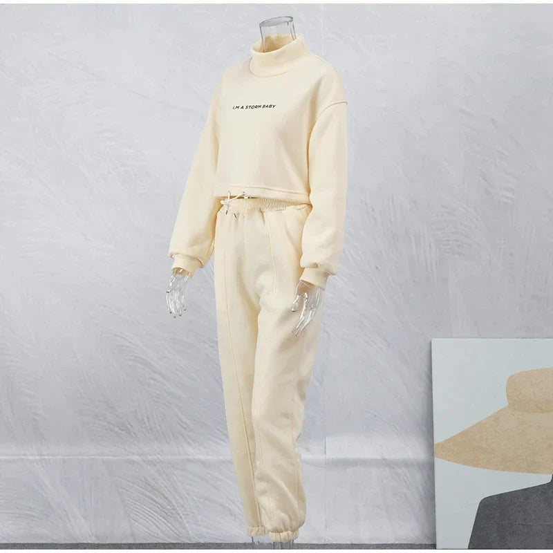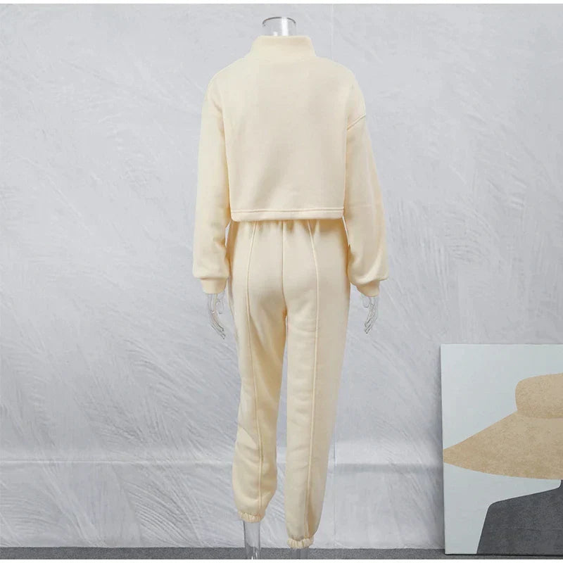Deze casual en toch stijlvolle outfit bestaat uit een top met lange mouwen en een bijpassende trainingsbroek.