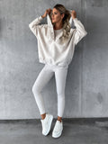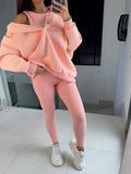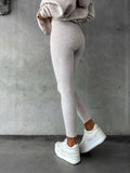 Het sweatshirt is voorzien van een knoopsluiting rond de hals, terwijl de geribbelde legging een elastische tailleband heeft voor een optimale pasvorm. De top rondt de outfit perfect af. Deze set is een aanwinst voor de garderobe van elke vrouw die zoekt naar zowel comfort als stijl. Vervaardigd uit superieur materiaal, is dit een essentiële must-have!
