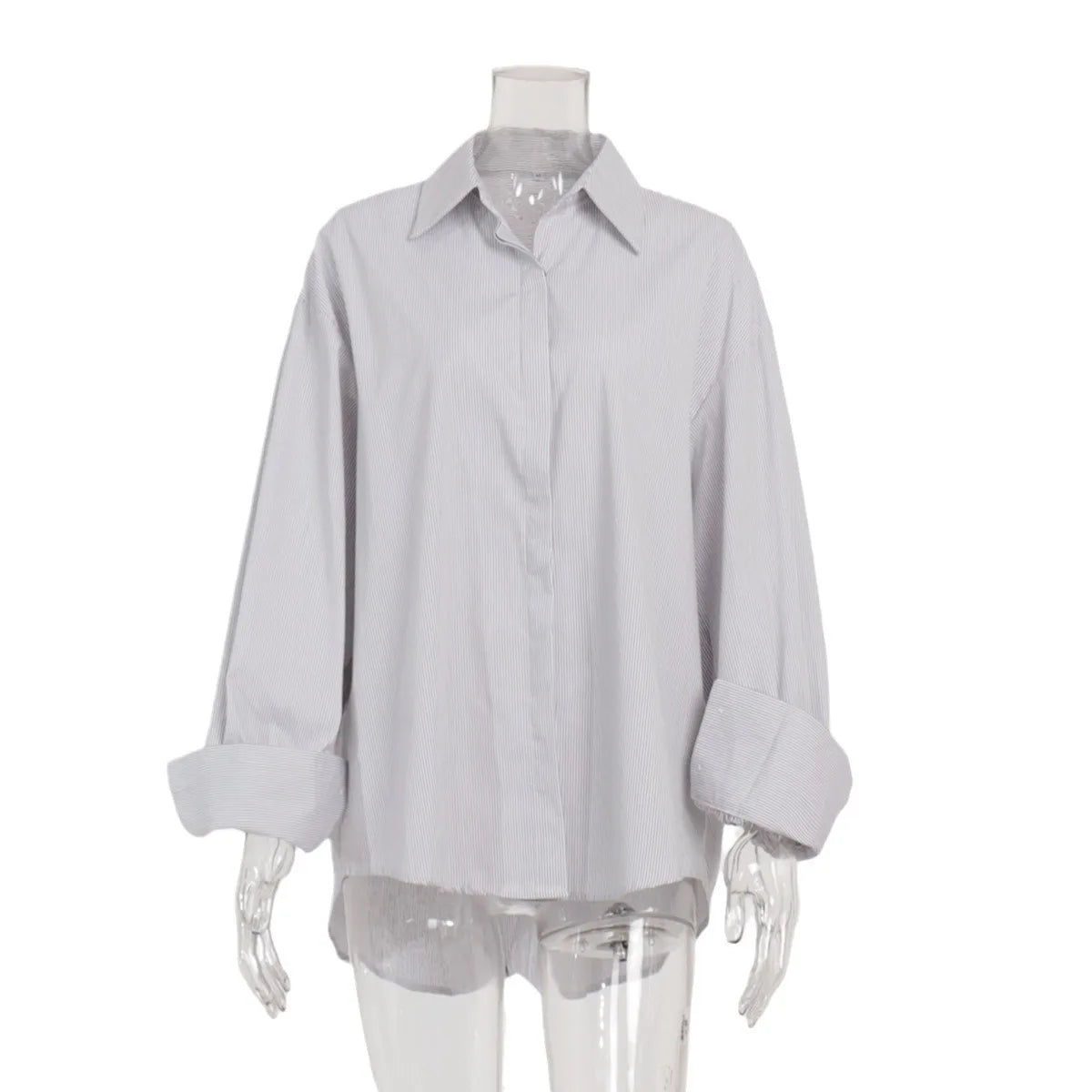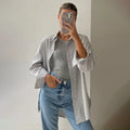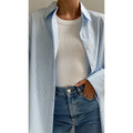 De Luxe Gestreepte Dames Cardigan is ontworpen om je elegantie te versterken zonder concessies te doen aan comfort. Gemaakt van zacht katoen, met een discrete polokraag en een eenvoudig open ontwerp waardoor je hem gemakkelijk kunt dragen en stylen. Of je nu naar kantoor gaat of een casual dag hebt, deze cardigan past bij elke gelegenheid. De middellange lengte en losse pasvorm zorgen voor een flatterende look die bij bijna alle lichaamstypes past.