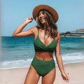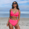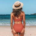 De set, bestaande uit een elegante top en een broek met hoge taille, is ontworpen voor stijlbewuste vrouwen die zich net zo comfortabel willen voelen op het strand als in de stad.