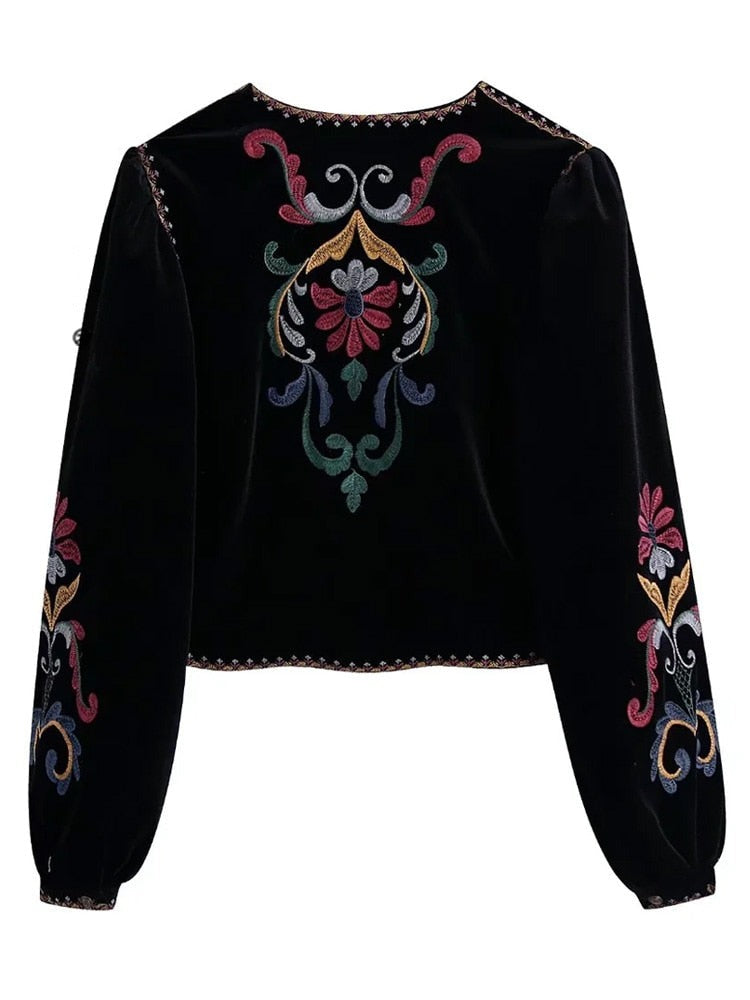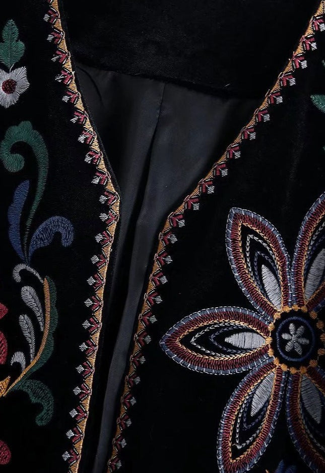 De Meadora Korte, Open Blazer van Geborduurd Fluweel is het perfecte jack voor elke gelegenheid