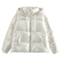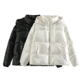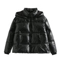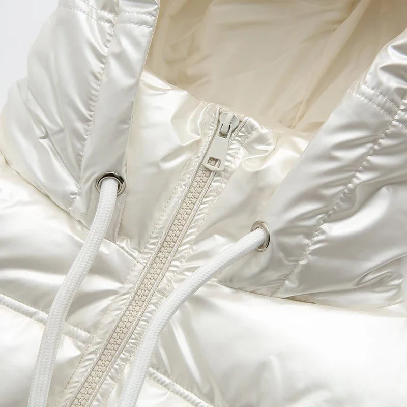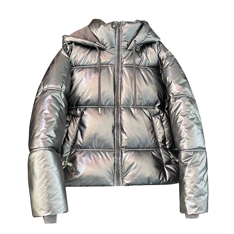 Metallic winter puffer jacket met hoge kraag en capuchon voor dames | Silvianza