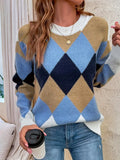 Nancy | Ruitpatroon Crew Hals Trui voor een Tijdloze Elegantie