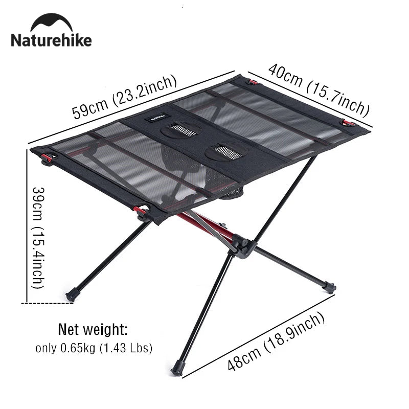 Met de Naturehike Lichtgewicht Opvouwbare Tafel vergeet je die zware, krakkemikkige tafels. Het ultralichte ontwerp maakt reizen eenvoudig zonder concessies te doen aan stabiliteit. Dankzij de waterbestendige eigenschappen blijft je tafel als nieuw, zelfs na een regenachtige dag. Knoop hem aan je rugtas of stop hem in je auto. Handige en zorgeloze avonturen wachten op je.