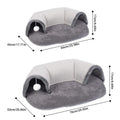 Dit innovatieve kattenbed combineert een gezellige slaapplaats met een spannende speeltunnel, waardoor het perfect is voor zowel ontspanning als actieve momenten.