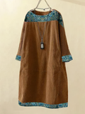Deze jurk is gemaakt van een combinatie van corduroy en nylon en biedt zowel duurzaamheid als een zacht, comfortabel gevoel. De lange mouwen en O-halslijn geven de jurk een klassieke uitstraling, terwijl de verschillende kleuropties de veelzijdigheid bieden om bij je persoonlijke stijl te passen.