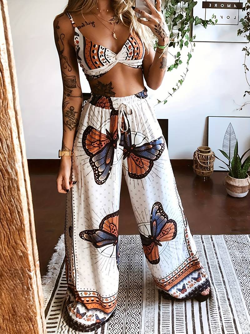 ✔ Uniek ontwerp: Met zijn opvallende vlinderprint en boho-stijl is deze set een echte blikvanger die je zomerse look zal verbeteren.