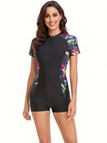 Nubil Aiza | Stijlvol geometrisch patchwork zwempak voor dames met ritssluiting
