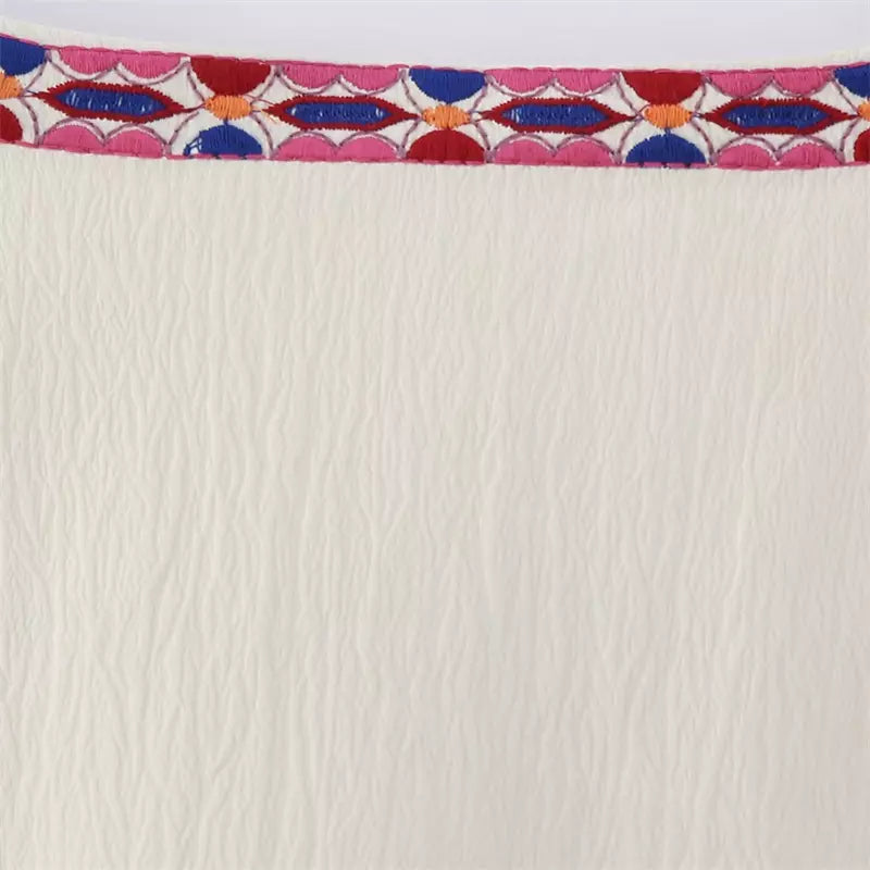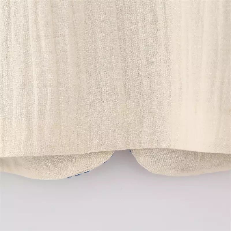 De crèmewitte kleur dient als veelzijdige basis, zodat je het kunt mixen en matchen met verschillende tops, tanks of tees. De neutrale tint straalt een gevoel van eenvoud en ingetogen charme uit, waardoor het een veelzijdig stuk is dat moeiteloos bij elke zomeroutfit past.