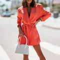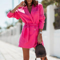 Dit oversized dubbellaagse blazerkleed heeft een spits revers, knopen en lange mouwen. De bijpassende riem benadrukt de taille, maar het kleed kan ook zonder riem gedragen worden voor een oversized pasvorm. Combineer het kleed met hakken voor een zakelijke uitstraling of draag het kleed casual met sneakers.