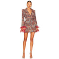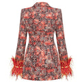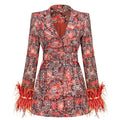 Dit schattige blazerjurkje is zowel chique als sexy! De jurk heeft lange mouwen, een reverskraag, een bijpassende riem en veren aan de uiteinden van de mouwen. De jurk heeft een opvallende print en een goede pasvorm. Draag deze jurk chique met hakken of combineer hem met laarzen voor een stoere look.