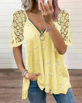- Kanten Mouwen: Delicate kanten mouwen die een vleugje verfijning toevoegen aan de blouse.