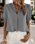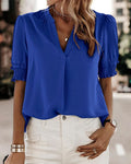 Verfraai je garderobe met de Nubil Blouse met Korte Mouwen en een V-hals, een perfecte mix van eenvoud en verfijning.