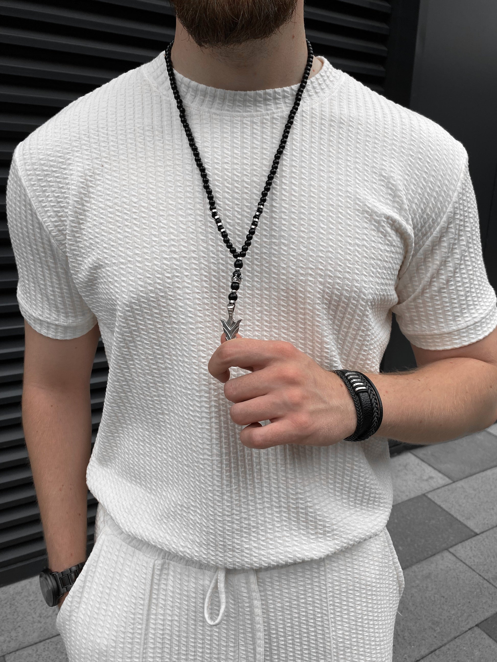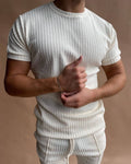 Deze veelzijdige set bestaat uit een klassieke witte polo en een bijpassende comfortabele broek, perfect voor elke gelegenheid.