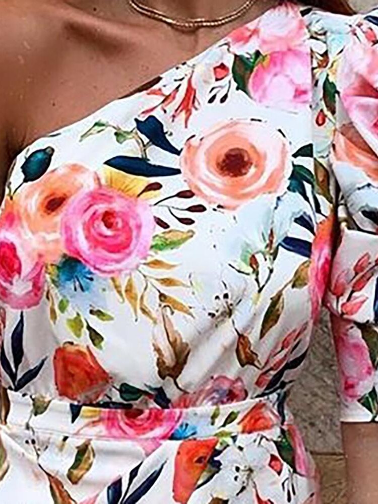 Dit one-shoulder-jurk is alles wat je deze zomer nodig hebt! De blote schouder maakt dit jurkje sexy, maar ook chic. Daarom is dit jurkje geschikt voor speciale gelegenheden, maar kan ook casual gedragen worden. Het jurkje heeft een korte pasvorm en een wikkelrok.
