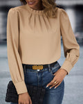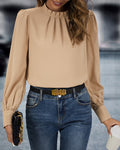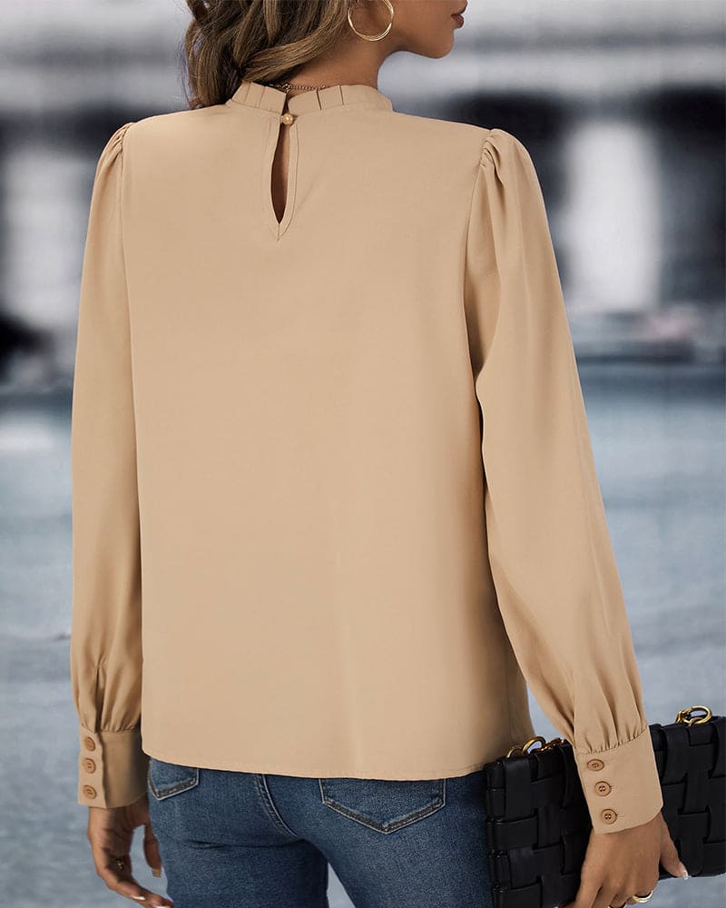 Ontdek de tijdloze elegantie van de Nubil Effenkleurige Blouse met Opstaande Kraag, een veelzijdig en stijlvol kledingstuk voor moderne vrouwen.